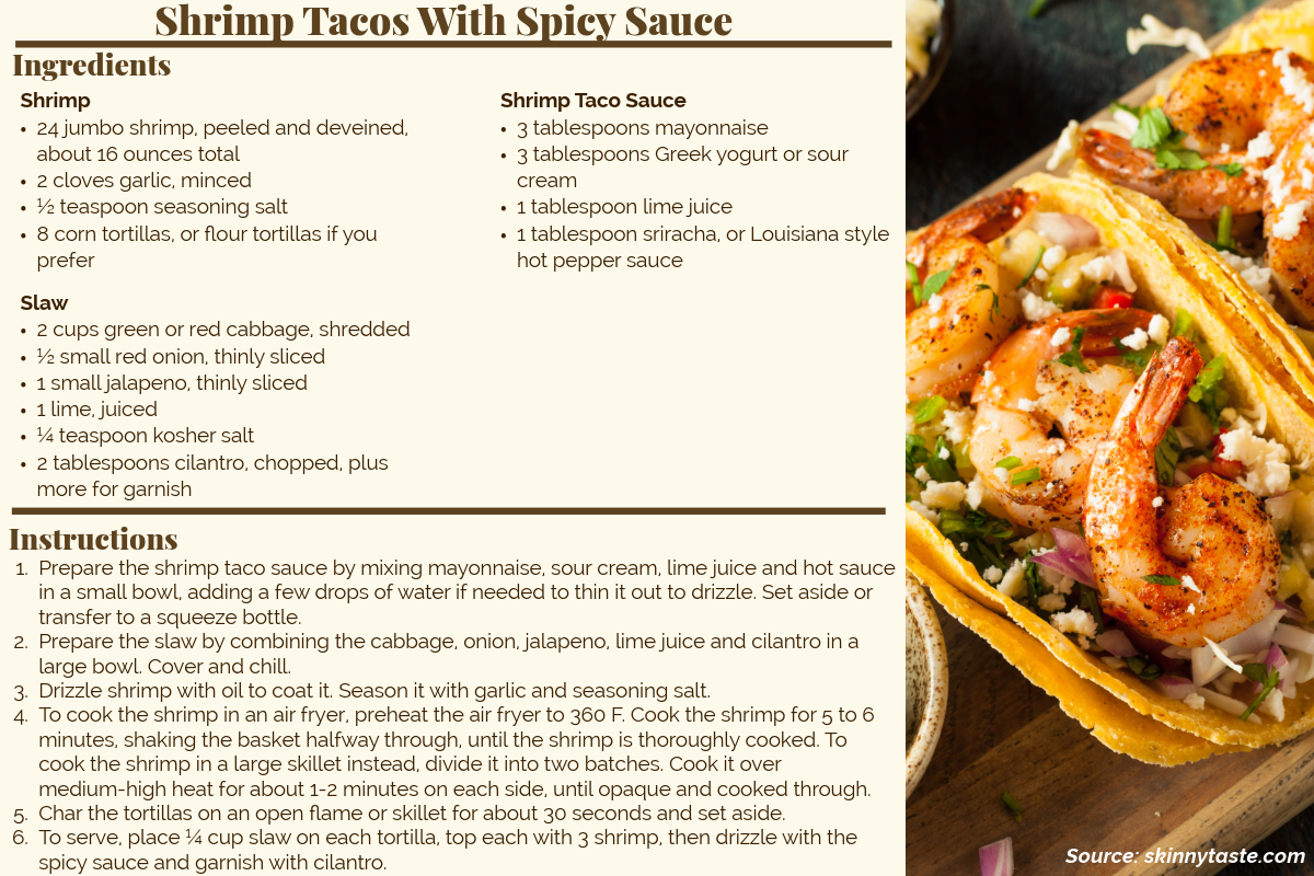 - Recipe: Shrimp Tacos With Spicy Sauce
