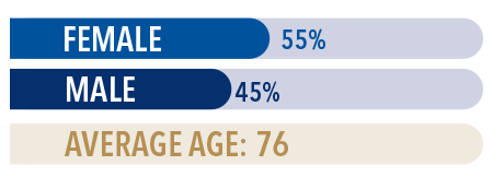 In 2025, 55% of our patients were female and 45% male. The average age was 76.
